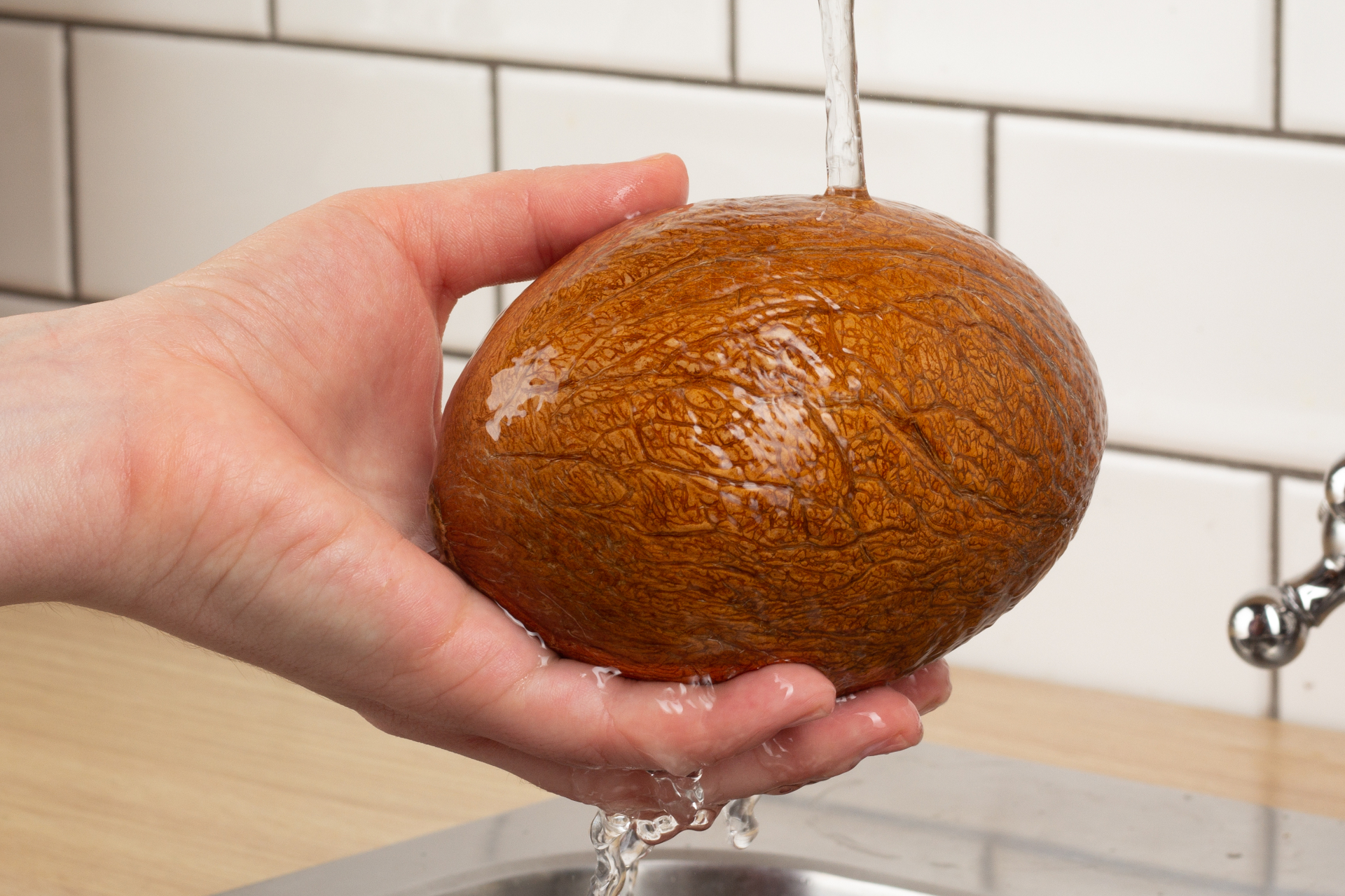 Rinse the coconut before opening.