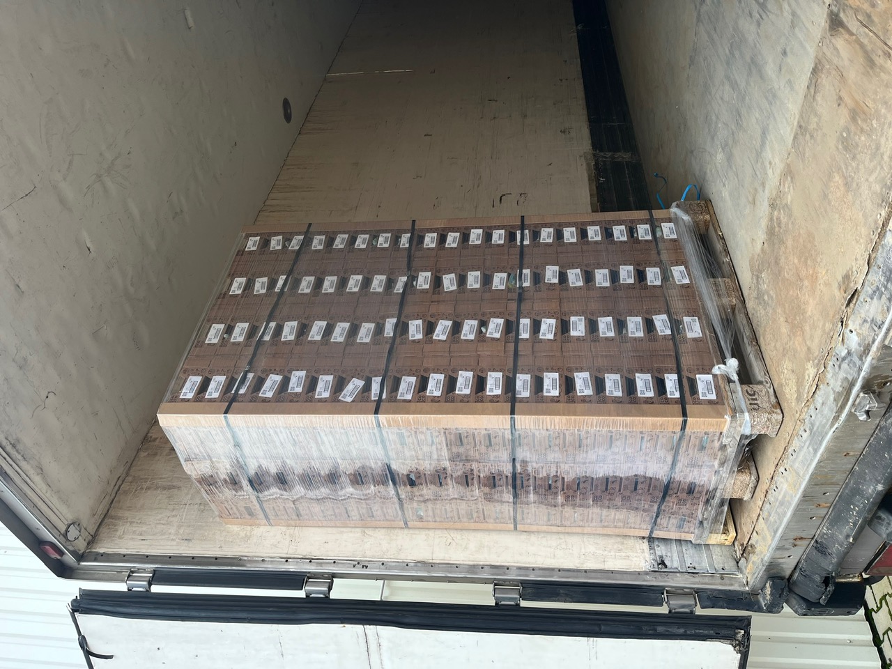 Branded OPEN COCO pallets — assembled with precision and loaded for refrigerated distribution across Europe.